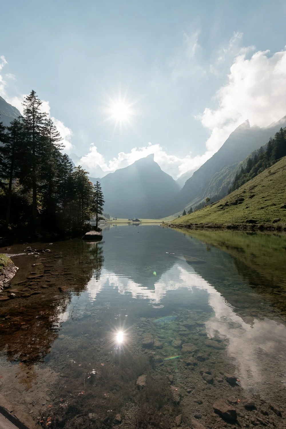 And then there was Seealpsee. After a hike along the cliffs of Ebenalp, we reached the lake just a little before the sun disappeared behind the tall mountains. The water was completely still, and a wide angle was perfect for capturing both the grand landscape and the peaceful mood. The Tokina delivered crisp detail, gentle contrast, and natural color that pairs beautifully with Fujifilm’s film simulations. Even when pointing straight into the sun, the lens handled flare with good control. But have a look for yourself.